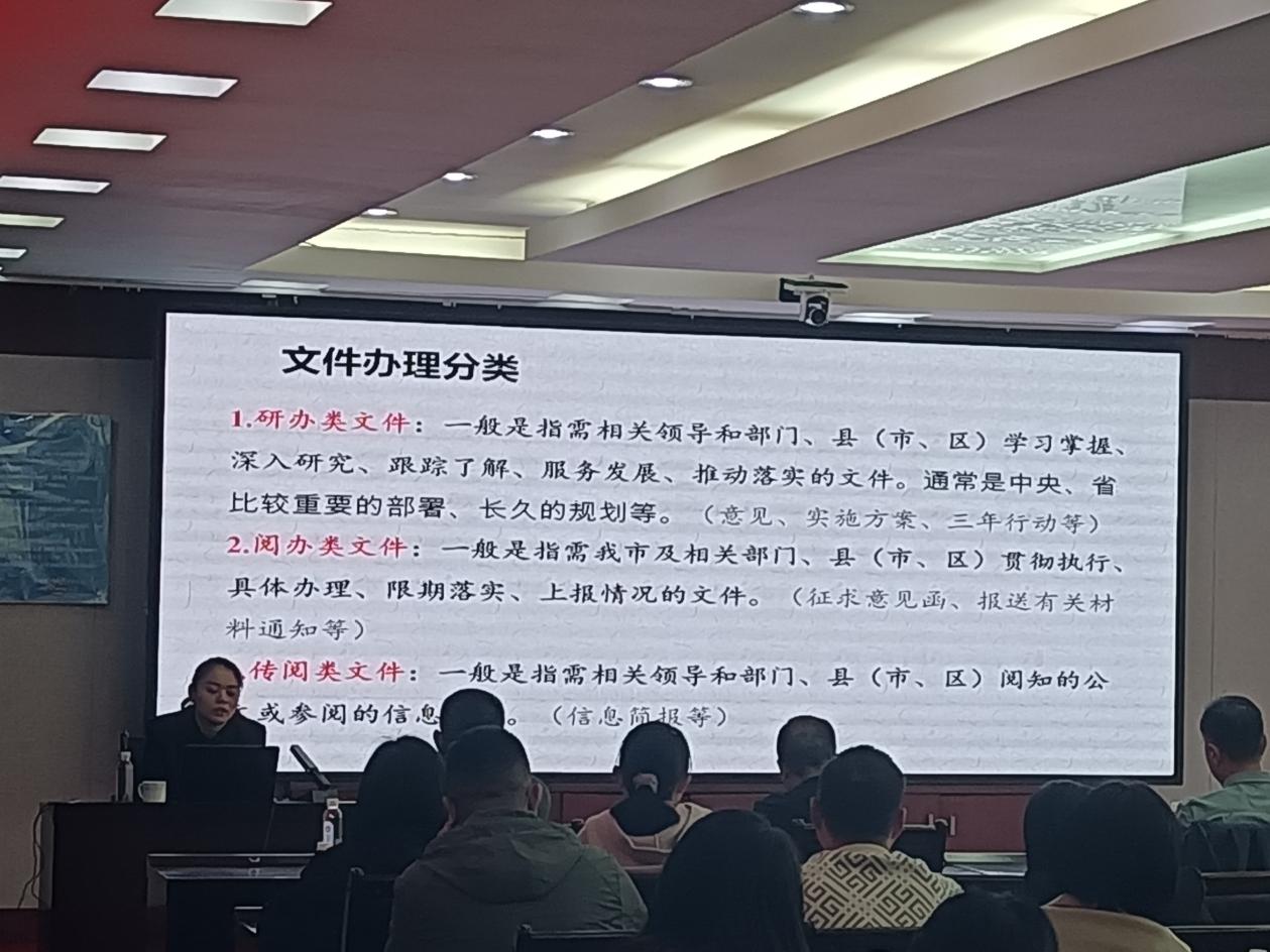 市委办公室办文科科长吕春燕以“文件阅研实操”为题作专题辅导。她就文件阅研工作的基本内容、文件办理分类、文件拟办意见起草等内容,结合实例进行详细解读,并针对提高办文质量、加强效能建设进行重点指导。