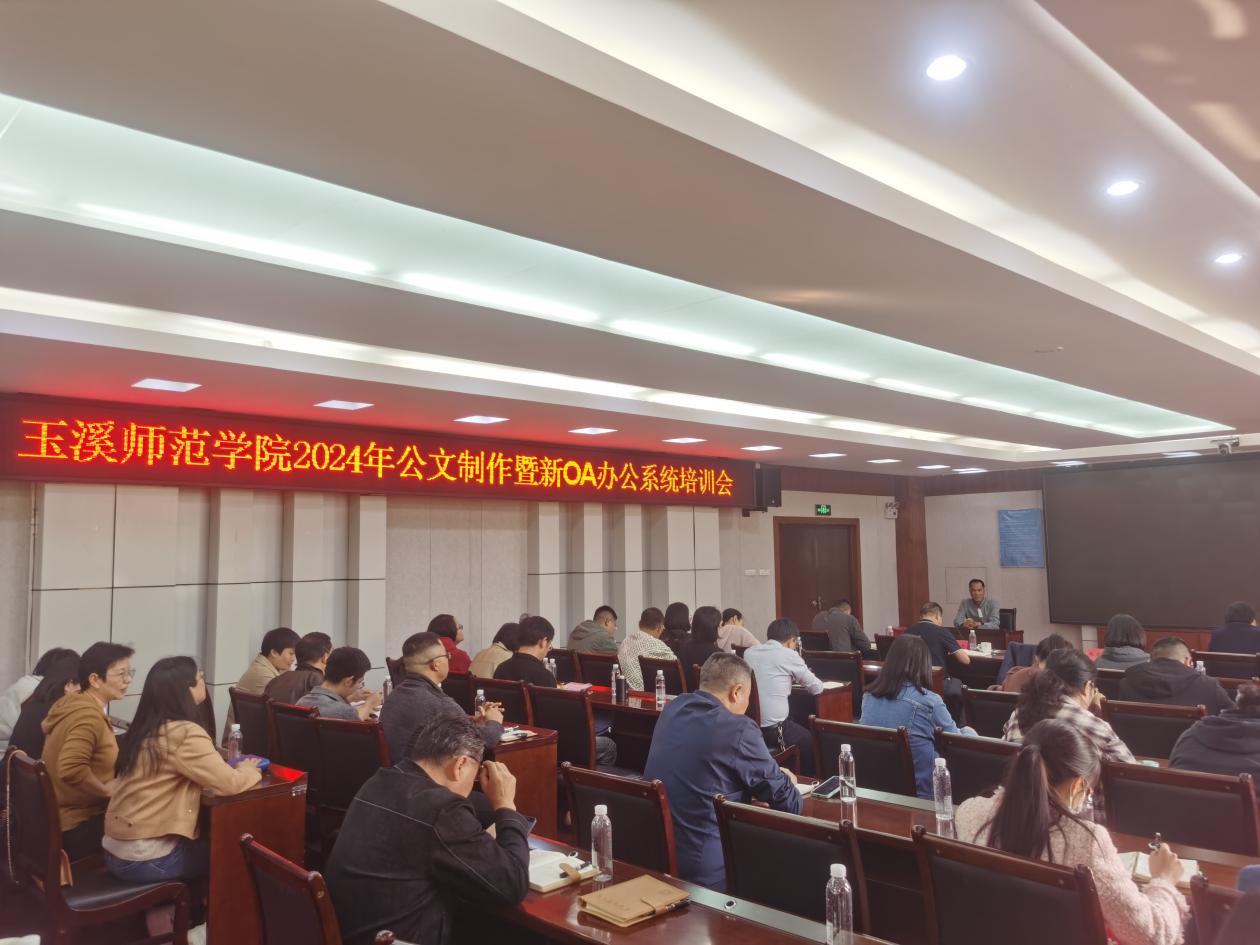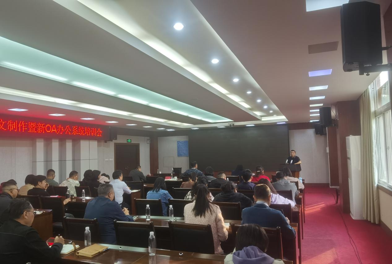 为进一步推进校园信息化建设,着力提升办公效率、规范公文制作、推广新OA系统应用。3月12日,学校在图书馆3003会议室组织召开2024年公文制作暨新OA系统培训会。会议邀请玉溪市委办公室办文科科长吕春燕、泛微网络科技股份有限公司实施工程师曹克亮作专题业务培训。学校党委副书记张亚辉、办公室(党委巡察办)主任田志忠、各学院各部门办公室主任、职能部门科级干部及学校办公室相关工作人员共计60余人参加会议。会议由田志忠主持。