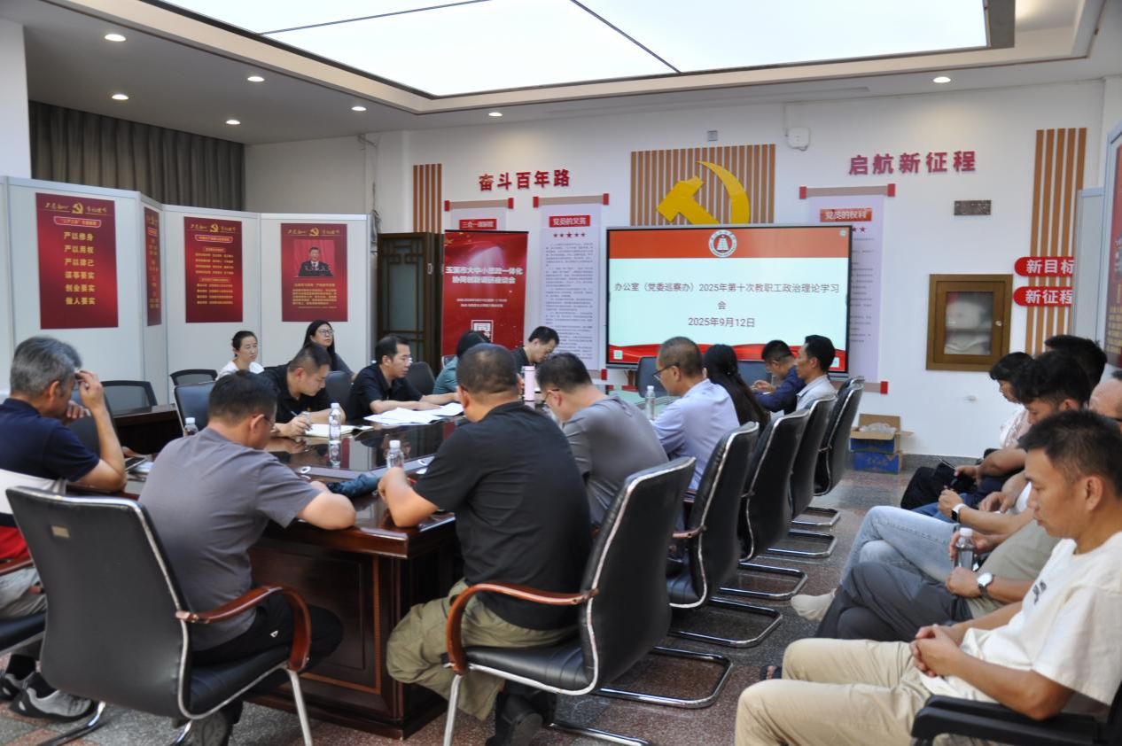 9月12日,办公室(党委巡察办)在马克思主义学院三楼会议室召开2025年第十次教职工政治理论学习会议,会议由办公室(党委巡察办)主任田志忠主持,全体教职工参加会议。
