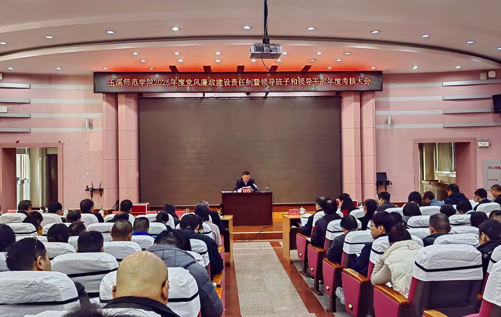 12月22日,云南省委教育工委第一考核组到玉溪师范学院,对学校2025年度党风廉政建设责任制落实、领导班子及干部履职、党委书记抓基层党建、意识形态工作责任制落实情况开展综合检查考核。学校党委书记姜家雄主持考核测评会。