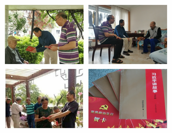 与此同时,离退休党总支在建党100周年之际,分别开展“老党员向党说句心里话”的支部主题党日活动,代表学校慰问老党员和困难党员,把学校党委的慰问信送到老党员们手中,并为老党员们过政治生日,送上政治生日贺卡和《习近平讲故事》亲子读物,希望党的优良传统、红色基因代代相传。