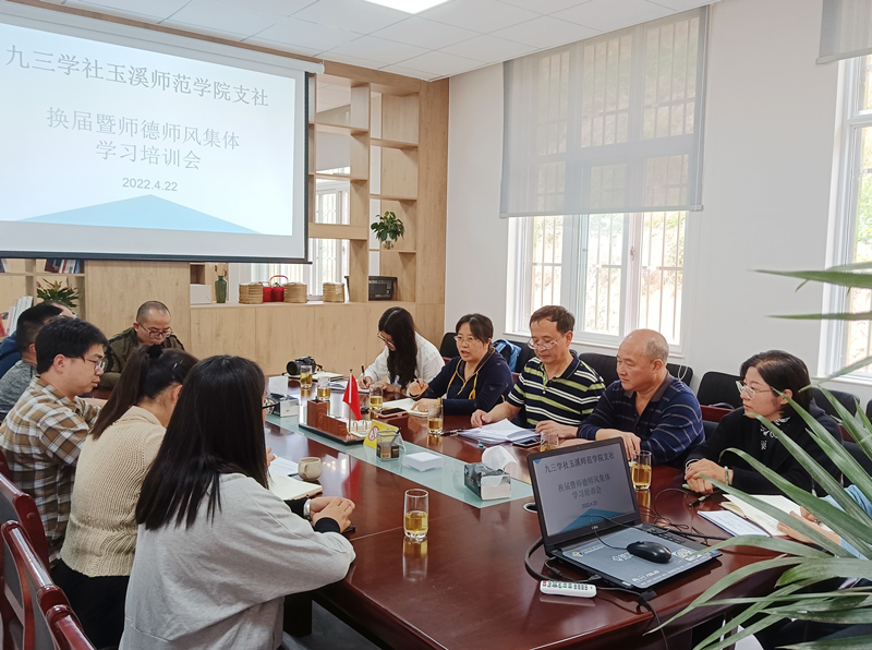 4月22日下午,九三学社师院支社召开换届暨师德师风学习培训会,九三学社玉溪市委专职副主委杨立波主持会议。