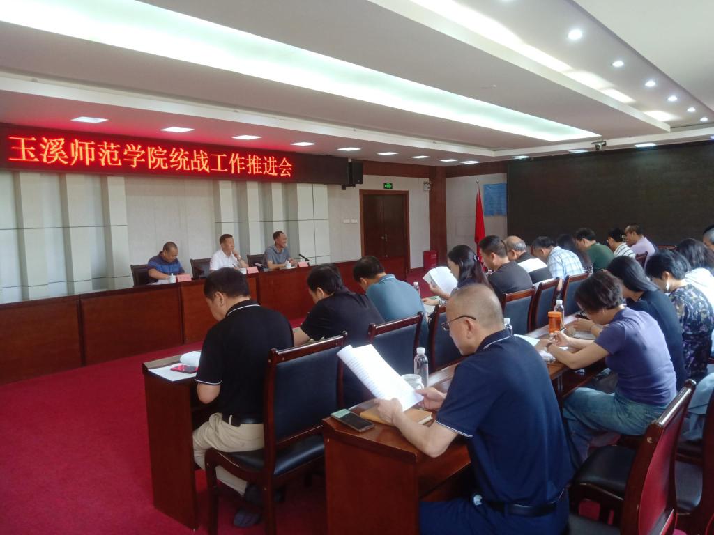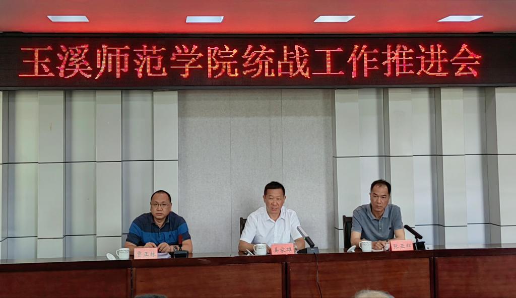 5月16日下午,玉溪师范学院统战工作推进会在图书馆3003会议室召开。学校党委书记姜家雄、副书记张亚辉出席会议,各二级党委书记、各民主党派基层组织负责人、留联会和知联会负责人以及统战部全体人员参加会议。会议由张亚辉主持。