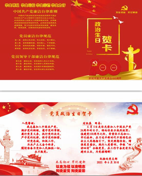 按照主题方案活动安排,本次活动为杨淑庆、付红英、白建平、殷娅梅、卢国理、张玮六位党员同志过了政治生日发送了电子贺卡。相关同志作了入党体会、学习党史心得交流发言。