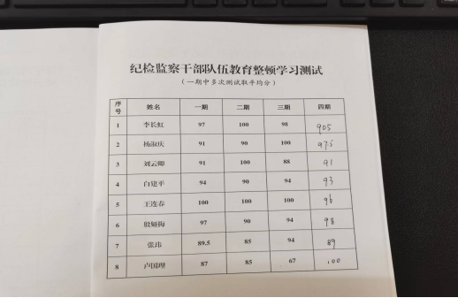 列出“作战表”抓工作落实。与“作战图”相配合,玉溪师范学院纪委列出教育整顿“作战表”,坚持目标导向和问题导向相统一,围绕上级督导组督导反馈和自身发现的问题、列出问题清单、明确责任,切实抓好落实。既从目标倒推,又经常对标对表,检视自身问题,强化查改融合。三是实行“清单式”管理+“销号制”落实推动检视整改。在检视教育阶段,玉溪师范学院纪委坚持凡查必改、边查边改、立行立改,逐一建立问题台账,逐项制定整改措施,一项一项整改、一个一个销号,确保每项问题都整改落实、整治到位。四是以点“题”领学、以“考”促学,通过“三个一”活动提高学习教育的精准性、实效性。学院纪委通过统学、联学、督学、考学等方式,创新学习方法,整合学习资源,强化思想政治教育,提高学习教育实效。建立教育整顿工作进展情况汇总统计、学习教育工作提示等制度,明确学习材料和阅读书目,通过“每天一自学、每周一领学、每半月一测试”的“三个一”活动,督促纪检监察干部全员真学、细学、深学,目前开展了5期学习测试,做到经常性检测学习效果。五是坚持教育整顿与业务工作两手抓、两促进。自教育整顿开展以来,学院纪委