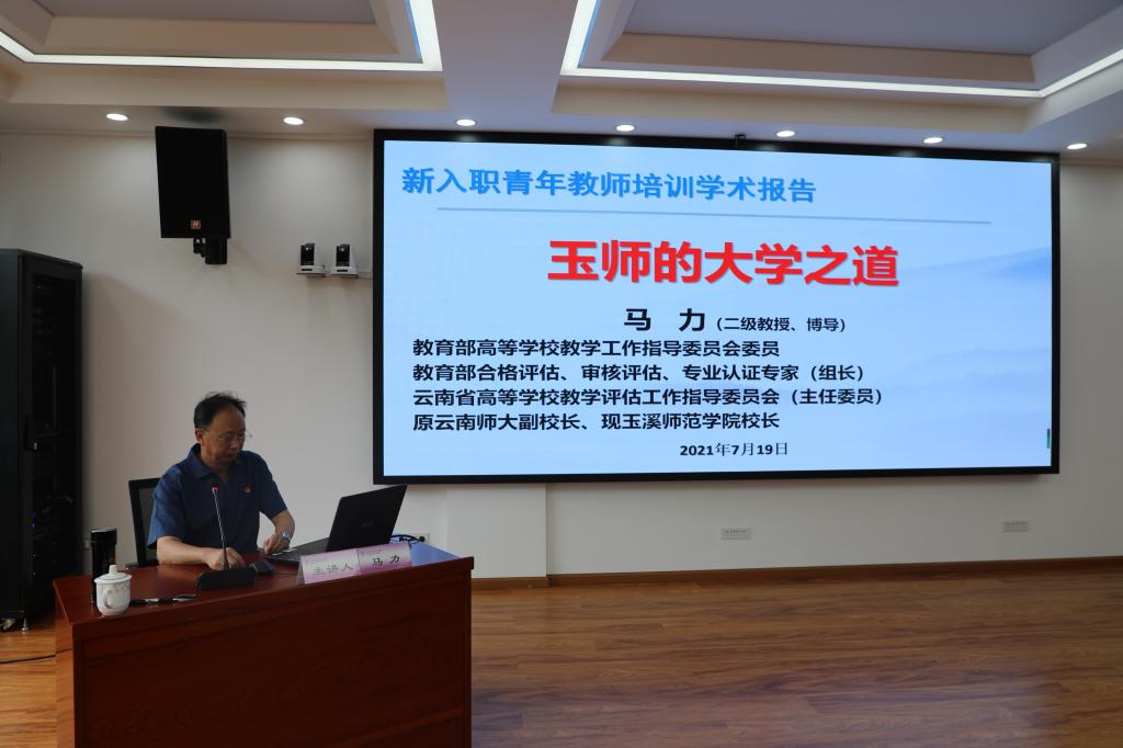 开班仪式后,系列专题讲座依次展开。首场专题讲座由党委副书记姜家雄主持,马力校长主讲。马校长以《玉溪师范学院的大学之道》为题,从“玉师大学之道”“玉师大学之路”“玉师大学之为”三方面展开讲授。