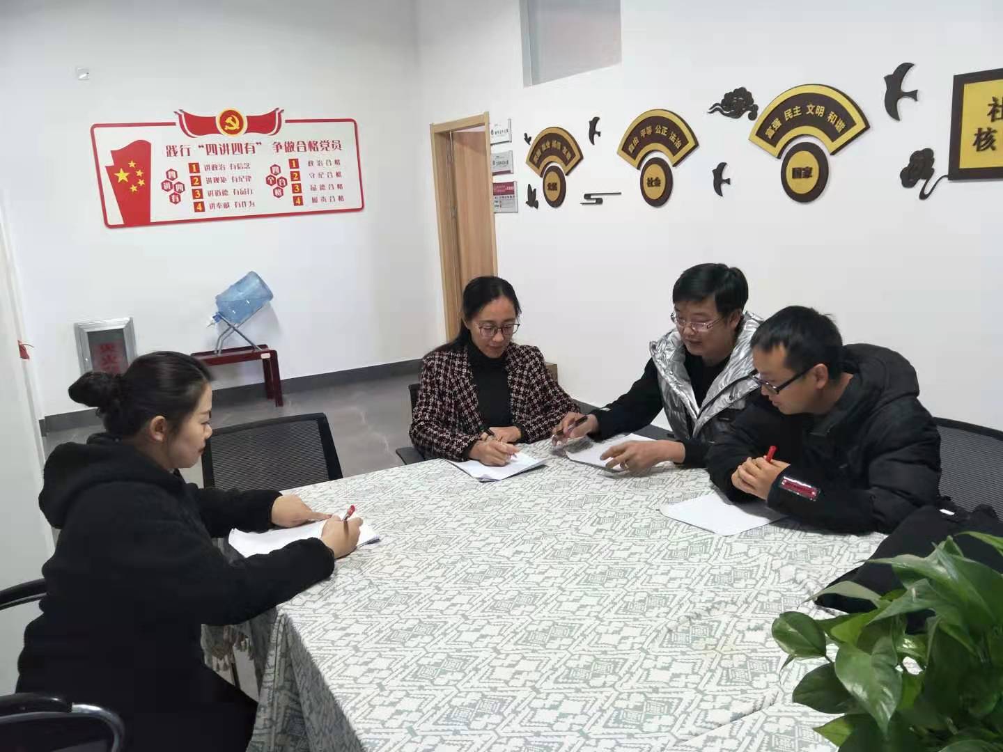 图二:张远老师和同事在讨论数学与应用数学师范专业认证的相关问题