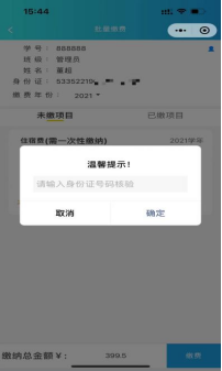 点击学费、住宿费 选择缴费年份 输入身份证号核验