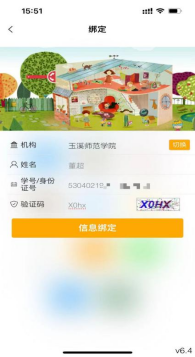 点击生活-校园 选择学校“玉溪师范学院” 输入姓名及身份证号绑定