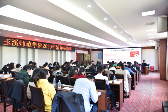 为深入学习贯彻十九届五中全会精神、全国高校思想政治工作会议精神,切实加强新形势下辅导员做好学生思想政治工作的能力,12月15日下午,我校2020年辅导员专题培训开班仪式在图书馆3003举行,学校党委副书记葛平出席开班仪式并讲话,学生处、各二级学院党委副书记、全体辅导员80余人参加了开班仪式。仪式由学生处处长张春霞主持。
