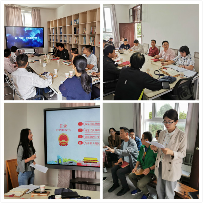 杨露同志领学了《中华人民共和国民法典》的相关内容。她围绕《民法典》编纂的指导思想和基本原则、重要意义、主要内容以及与我们相关的条款等方面进行了解读,号召全体党员带头用好《民法典》,维护《民法典》权威,将《民法典》的学习与工作紧密结合,争做学法、懂法、守法、用法、护法的表率。