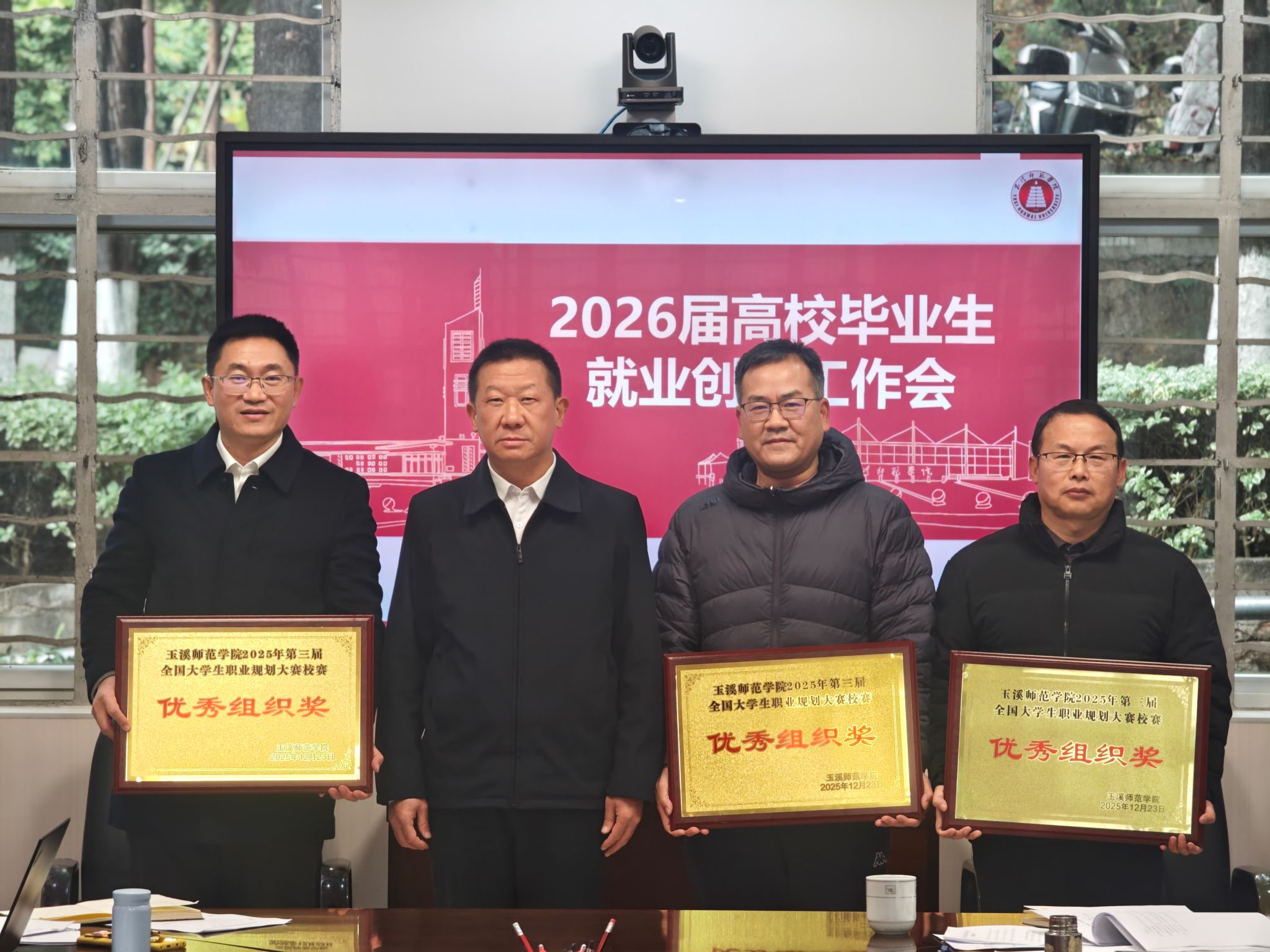 12月25日,玉溪师范学院召开2026届毕业生就业创业工作会,总结2025年工作,安排部署新一年工作任务。校党委书记姜家雄出席会议并为获“第三届全国大学生职业规划大赛校赛优秀组织奖单位”颁发奖牌。副校长李涛主持会议。