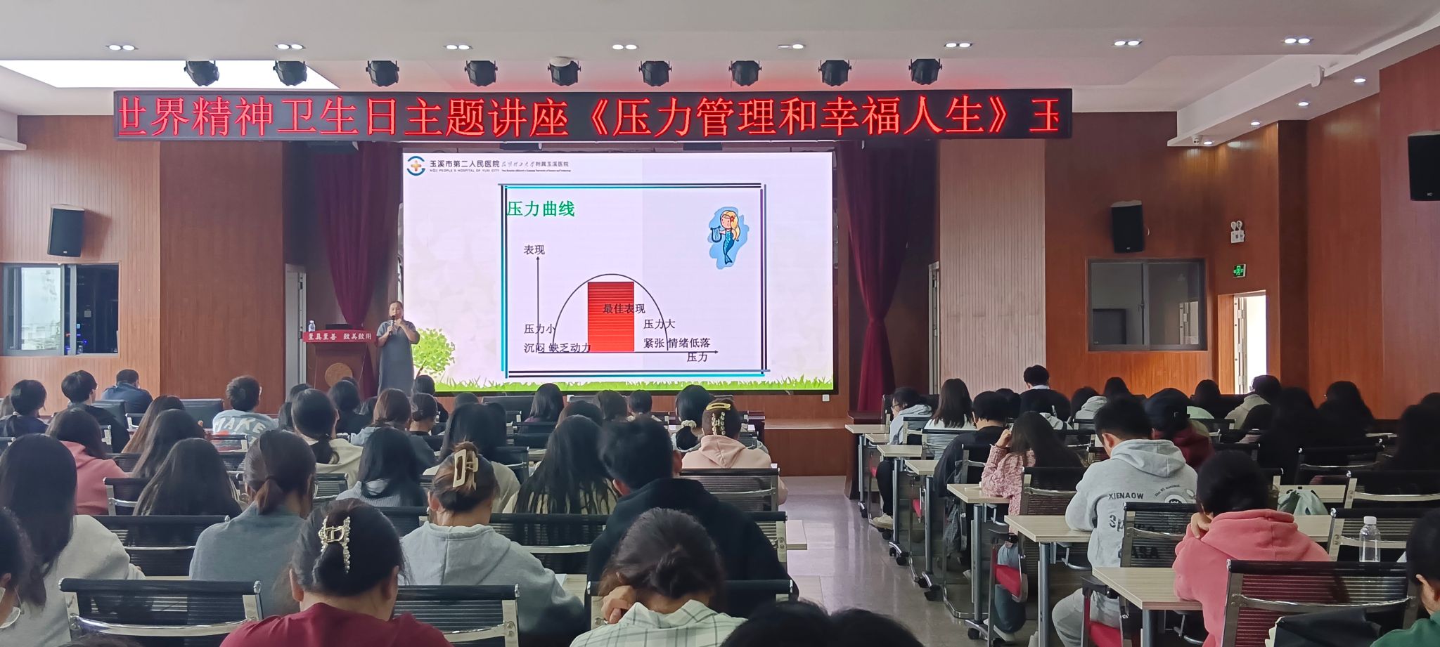 10月10日,世界精神卫生日当天,学校心理健康教育咨询中心联合玉溪市第二人民医院,围绕“共建共治共享 同心健心安心”主题,开展了“压力管理和幸福人生”知识讲座与心理健康义诊活动。讲座由玉溪市第二人民医院心理科副主任医师熊燕讲授,200多名学生参加活动。