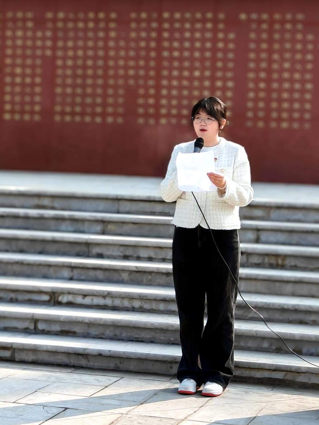 期间,文学院2021级汉语言文学专业陶然同学进行了“赓续英烈精神,汲取奋进力量”主题宣讲。她呼吁同学们把对革命先烈的追思、敬仰转化为奋斗拼搏的动力,传承红色基因,赓续英烈精神,汲取奋进力量,以永不懈怠、一往无前的姿态,走好属于青年一代人的长征路。