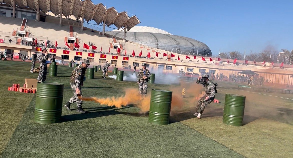 本次大赛共有33所本科院校和44所高职院校参赛,比赛围绕五公里越野、定向运动、手榴弹投掷、障碍跑、射击等五个项目开展。
