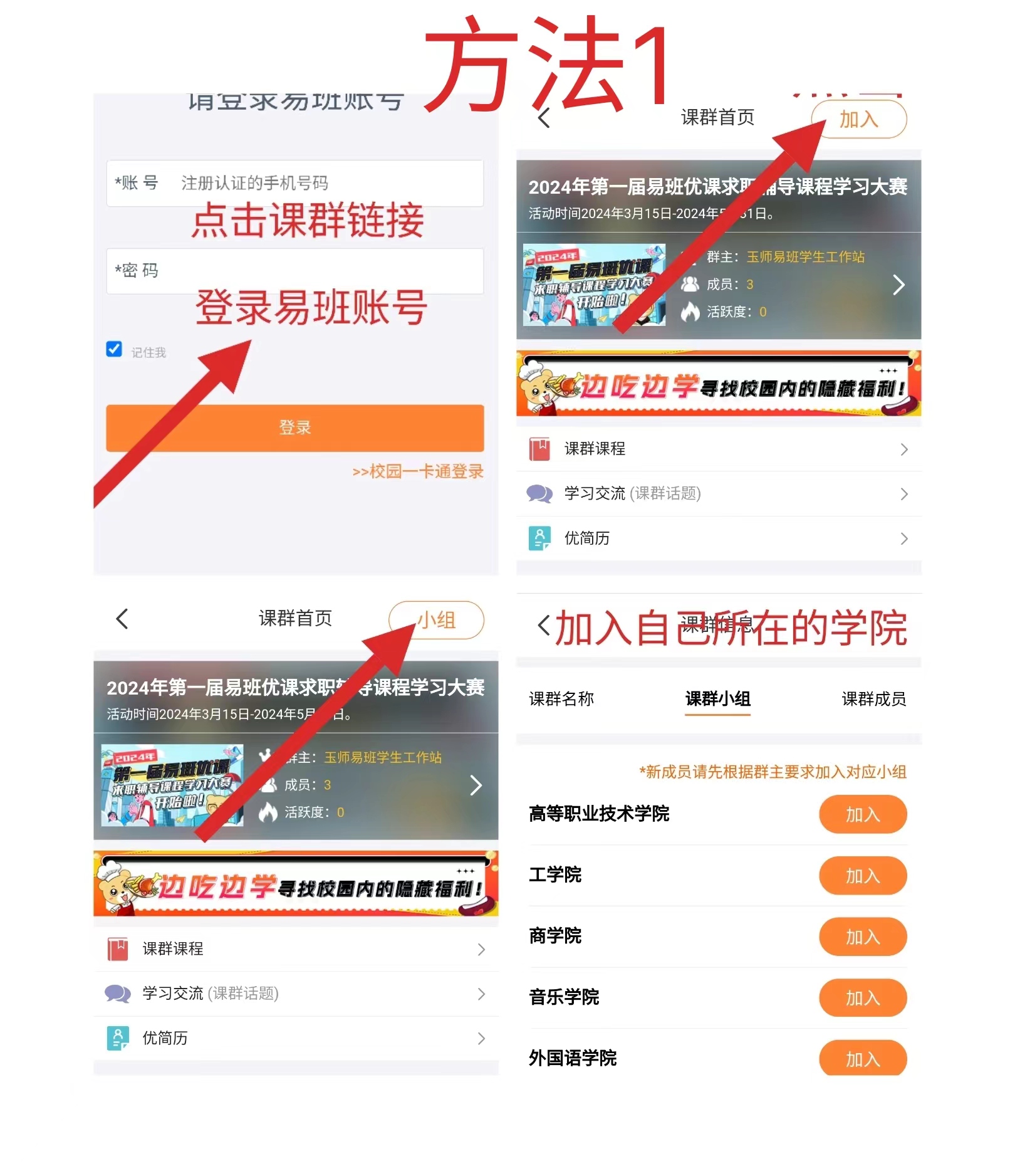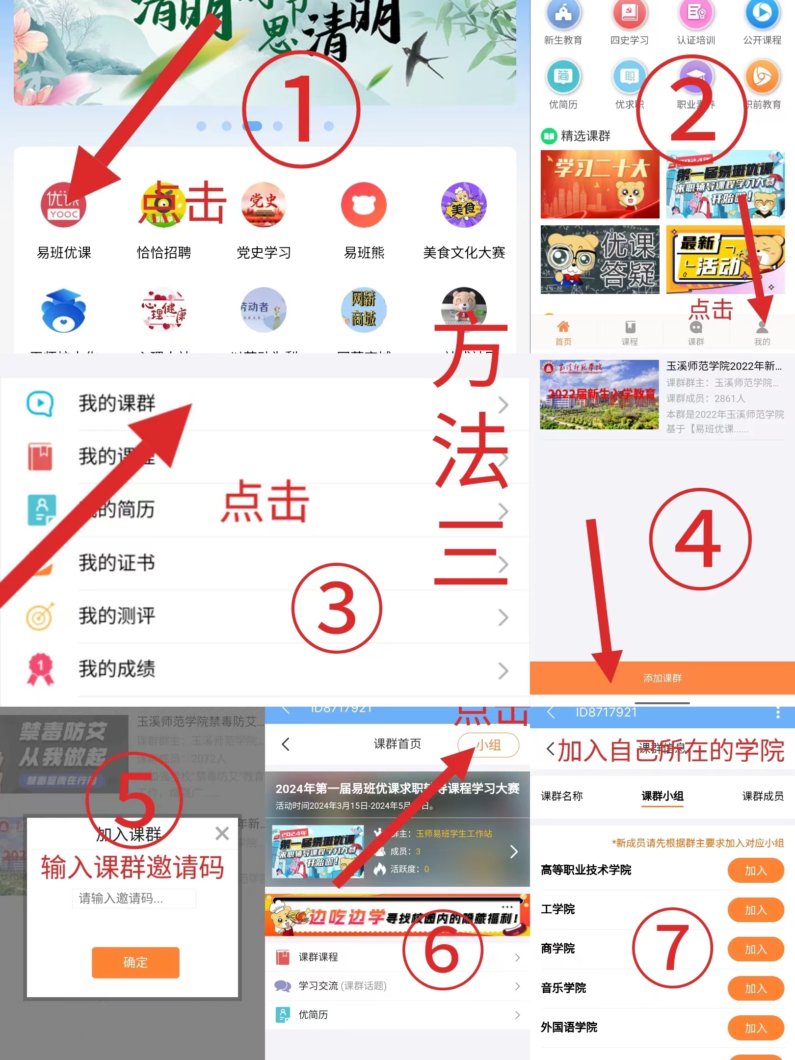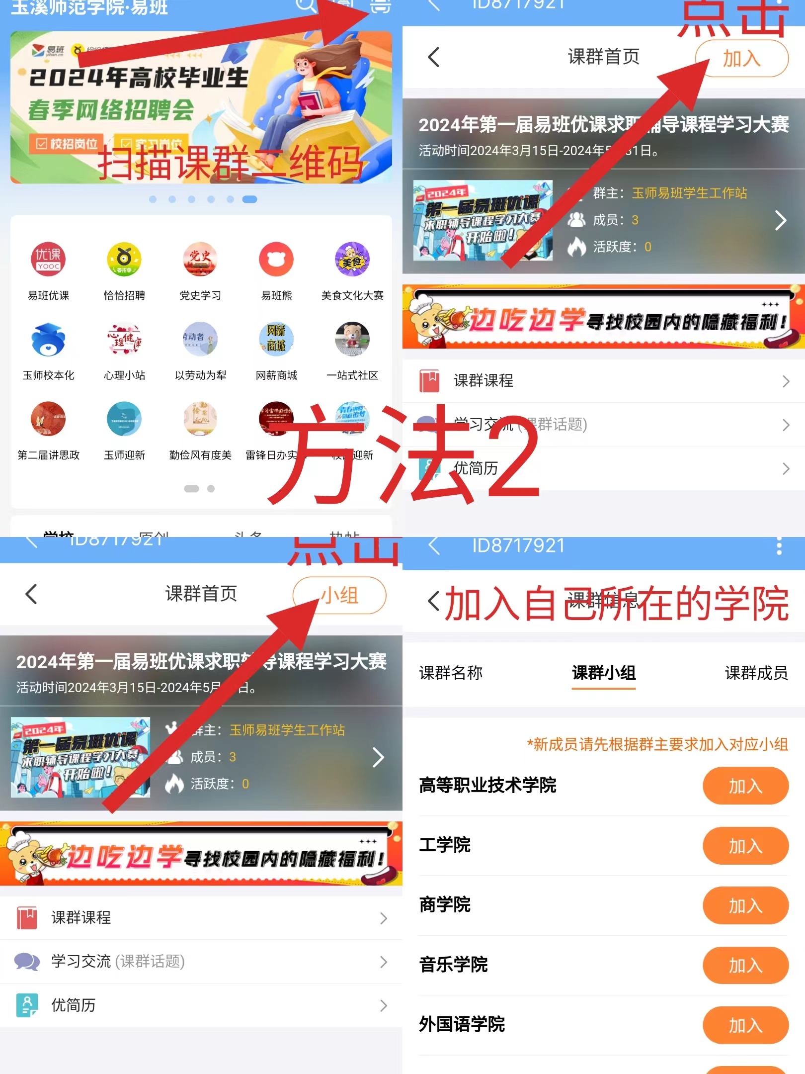加入课群的方式有以下三种,任选一种方法皆可成功加入课群:方法一: