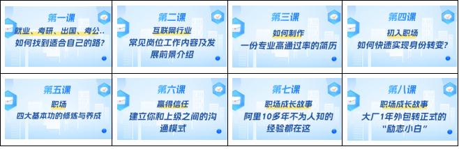 进入易班优课学习《全国高校创业就业公益大课堂》线上课程,课程内容如下图所示:
