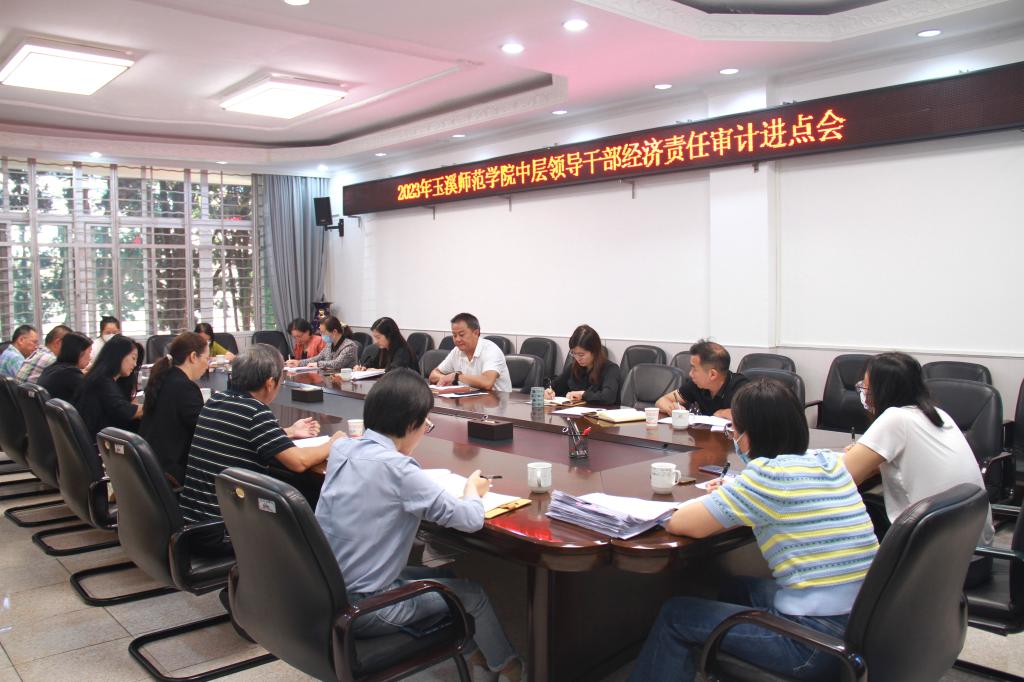 2023年9月26日上午9:00,审计处组织召开2023年中层领导干部经济责任审计进点会。党委副书记、校长段红云、组织部、被审计领导干部、被审计单位党政主要负责人、审计组全体人员参加会议。会议由审计处处长苏蜀娟主持。