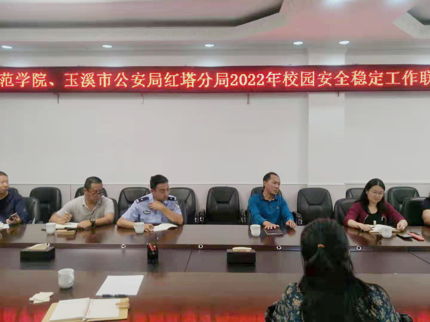 9月23日,玉溪师范学院、玉溪市公安局红塔分局2022年校园安全稳定工作联席会在我校一办一楼会议室召开。学校党委副书记张亚辉,副校长杨光出席会议,玉溪市公安局红塔分局相关领导、学校有关部门人员参加了会议。会议由副书记张亚辉主持。