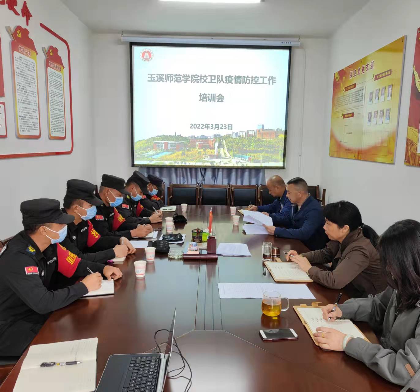 3月23日上午,保卫处组织开展校卫队疫情防控培训会,保卫处副处长史文莉、校园安全科科长卢江、校园交通消防管理科科长李绍荣、综合科科长淳秀梅以及校卫队班队长参加培训。培训由校园安全科科长卢江主持。