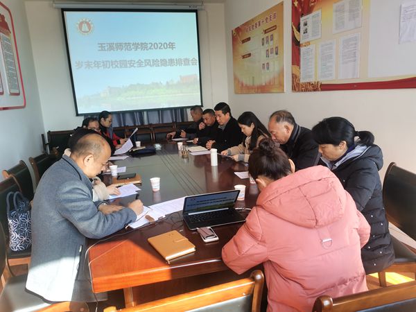 按照《云南省安全生产委员会 云南省自然灾害应急管理委员会关于认真贯彻落实省政府常务会议精神切实抓好元旦春节和全国、全省“两会”期间安全防范工作的通知》《玉溪市教育体育局关于印发全市学校2020年岁末年初安全生产风险隐患大排查大整治实施方案的通知》要求,《2020年岁末年初校园安全风险隐患排查工作方案》,由校党委委员、副校长杨光牵头,于12月28日-31日,开展2020年岁末年初校园安全隐患大排查。