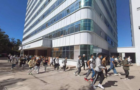 11月16日,学校邀请红塔区消防救援大队李园副队长以“抓消防安全,保高质量发展”为主题,采用案例与理论相结合的方式开展消防安全知识讲座,并指导参加师生在图书馆及附近球场进行“安全读秒”疏散演练和灭火实战演练。为进一步强化提升高层公寓管理人员和住宿学生在应急状态下的自救互救能力,11月29日,保卫处、学生处和后勤服务中心联合在龙马公寓组织开展了消防应急疏散演练,不到7分钟的时间,一千余名学生顺利从龙马公寓有序疏散到安全集中地。