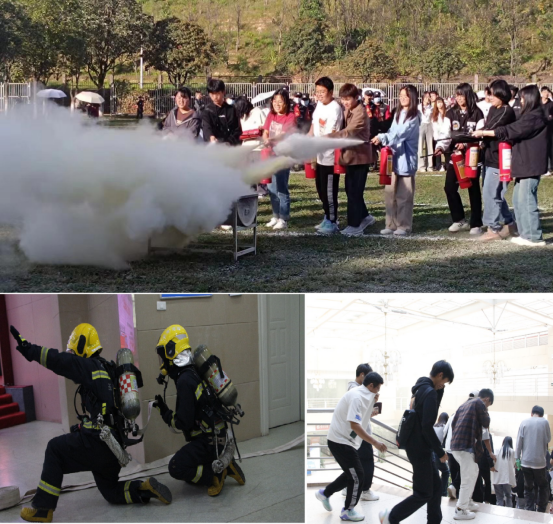 11月7日,保卫处联合玉溪市红塔区消防救援大队组织开展“玉溪师范学院第32个全国消防宣传月”系列活动。一是邀请红塔区消防救援大队副大队长至校内组织开展《消防安全知识讲座》,参与师生总计400余人,讲座以真实的火灾案例进行深入分析,火灾发生的原因、如何选择灭火方法、期初火灾如何扑救、如何逃生等知识的讲解;二是讲座结束后开展“安全读秒”火灾疏散逃生演练,请参加讲座的师生服从现场校卫队队员的指挥,有序疏散。并模拟突发火险疏散和消防队突发火险救援情景,现场由消防队放置消防演习用烟雾弹、安排扑救人员,模拟真实火场扑救与疏散;三是开展灭火实战演练。在学校3号足球场组织灭火实战演练,使用灭火器200具、汽油柴油各10升、油盆2个、火把4把、消防水带、消防水枪1套、扩音器2个,总计参与实战灭火演练师生400余人,师生在消防队员、校卫队队员指导下,正确使用灭火器扑灭初期火险。