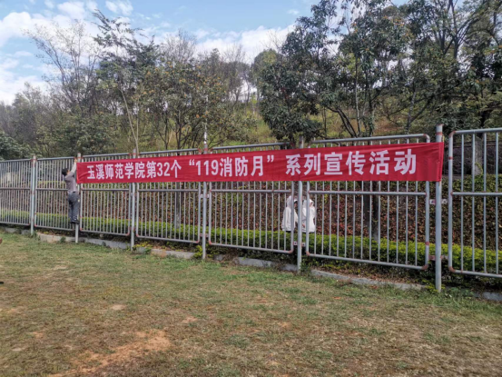在全国第32个“119”消防宣传月,保卫处组织开展了“预防为主、生命至上”为主题的系列消防安全宣传教育活动,11月6日在校内悬挂消防安全宣传标语。