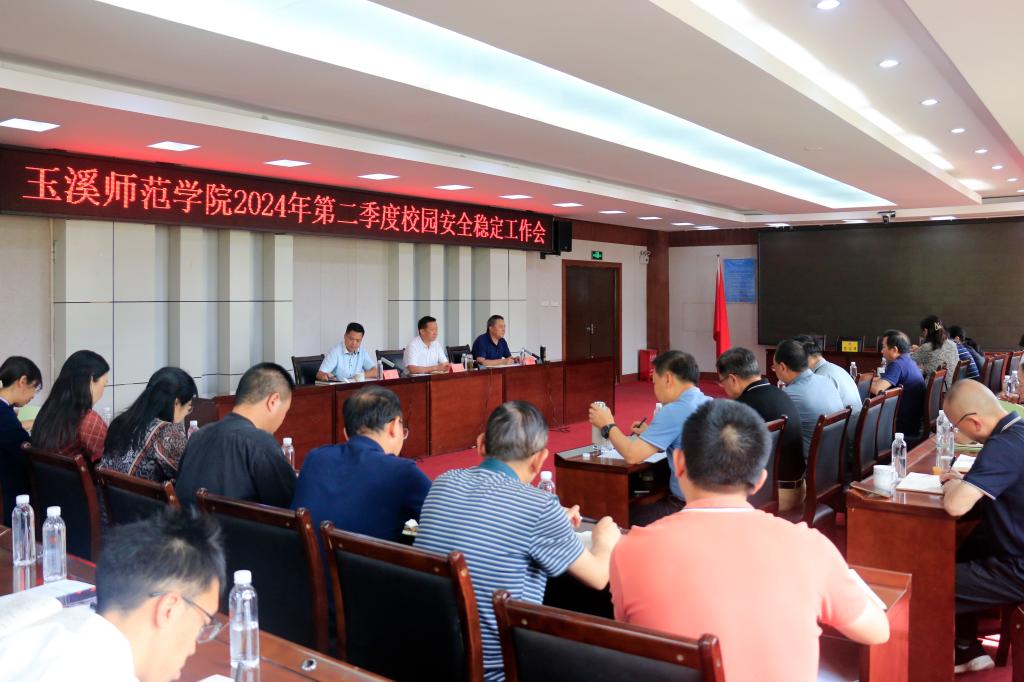 4月28日下午,玉溪师范学院召开2024年第二季度校园安全稳定工作会,听取近期有关工作情况汇报,安排部署近期校园安全稳定工作。校党委书记姜家雄,校党委副书记、校长段红云,校党委委员、副校长李涛,学校社会治安综合治理委员会各成员单位主要负责人参加会议,会议由李涛主持。