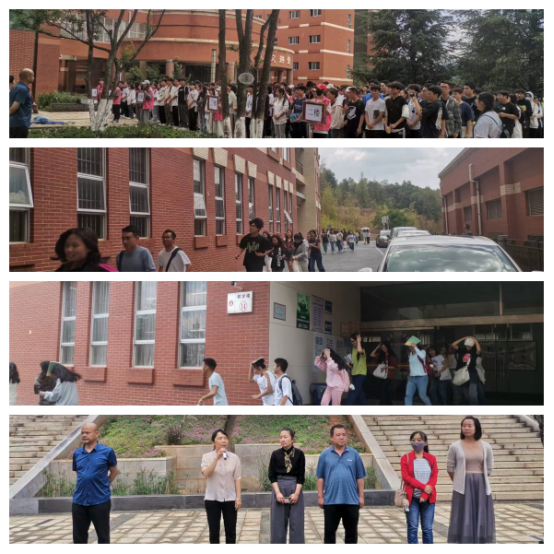 三、针对地震应急疏散与消防应急疏散的差异,保卫处邀请玉溪市红塔区消防救援大队和玉溪市防灾减灾局工作人员现场指导,保卫处联合后勤服务中心、学生处、团委及各学院,分7次全覆盖对13栋学生宿舍楼组织开展应急疏散演练,参演师生约12000余人次。