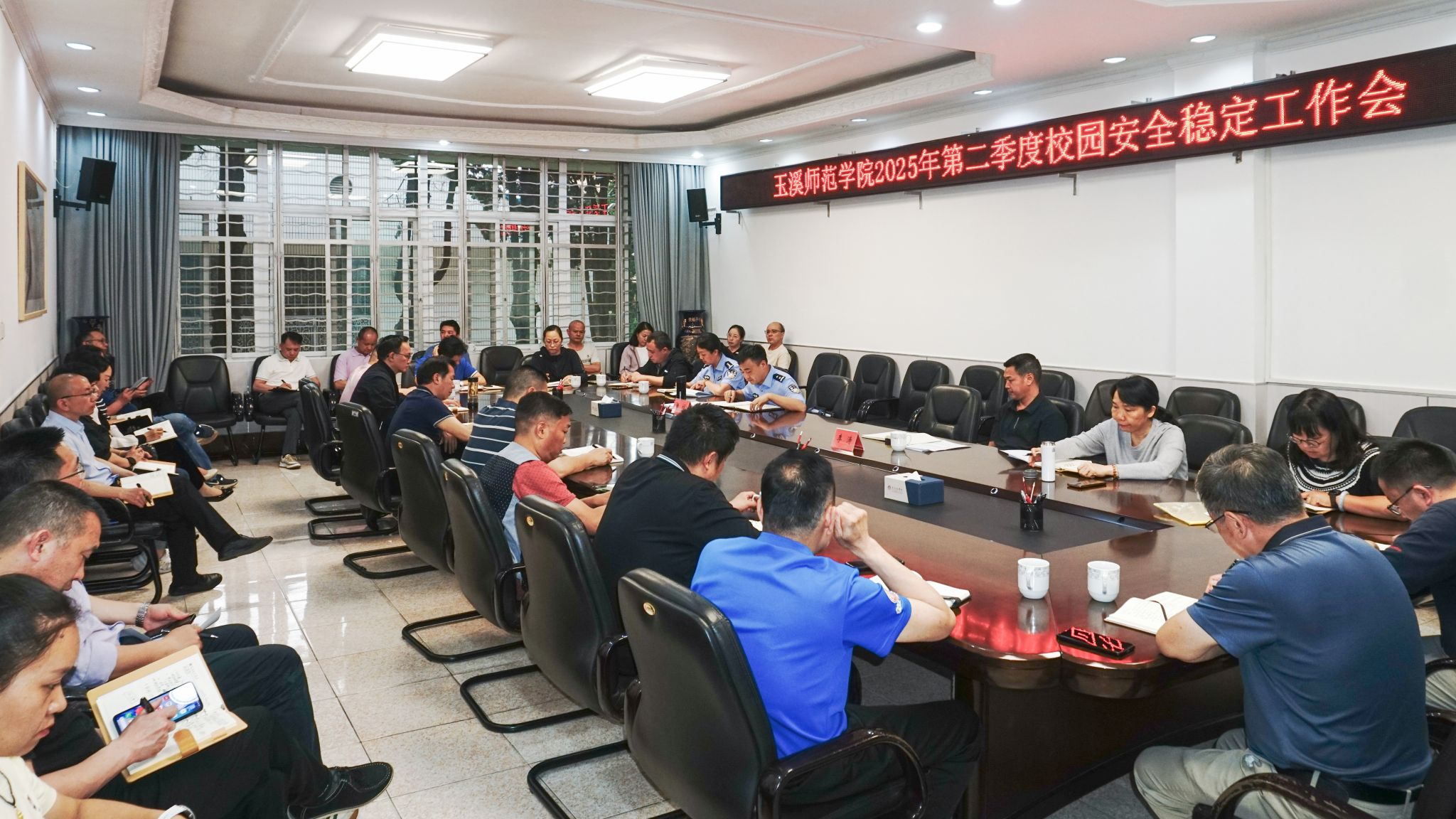 4月25日下午,学校在一办一楼会议室召开第二季度校园安全稳定工作会。红塔山派出所所长曾祥,副校长李涛、学校社会治安综合治理委员会全体成员参会,会议由李涛主持。