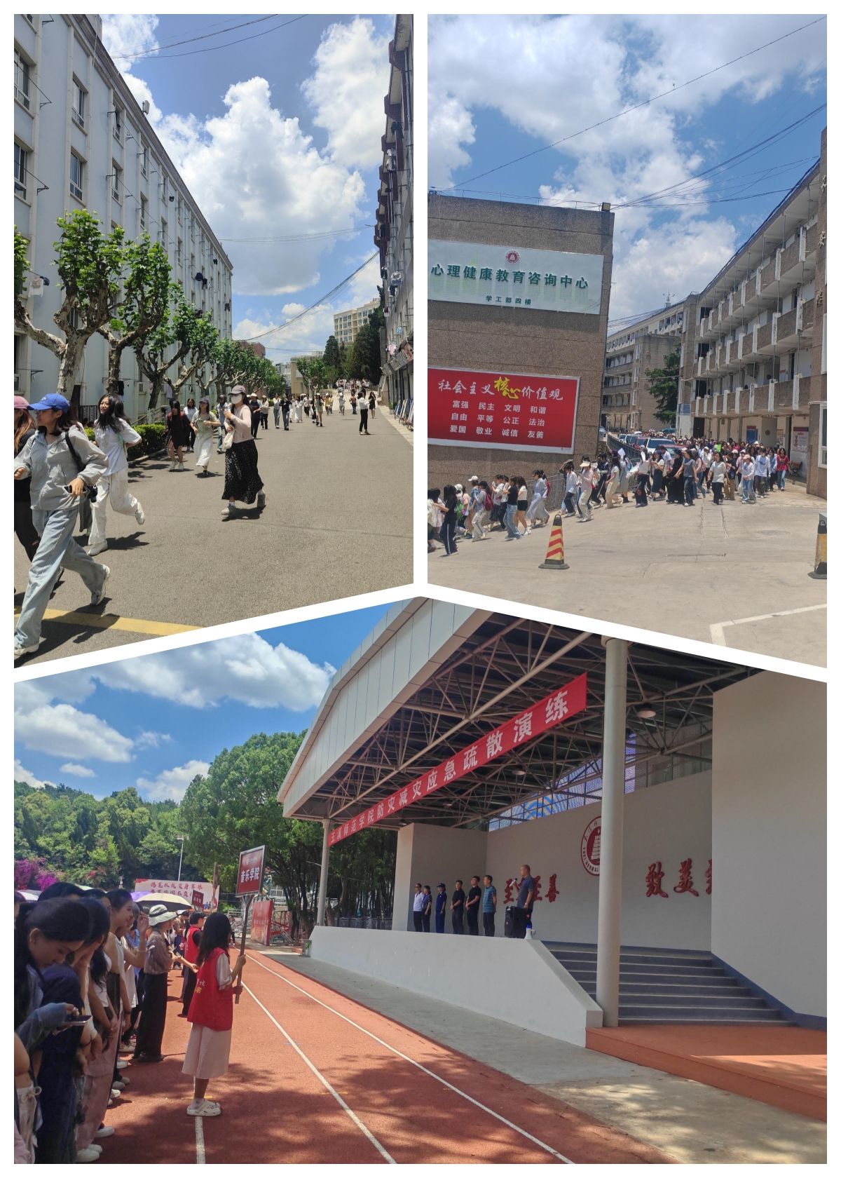 为进一步提高我校师生灾害来临时逃生技能,强化紧急避险自救自护能力,5月16日,保卫处、学生处、后勤服务中心组织开展了玉溪师范学院2025年春季学期学生宿舍应急疏散演练。学校副校长李涛,玉溪市防震减灾局震灾处置科蒋林峰、红塔区消防救援大队张潇予,各二级学院5500余名师生参加演练。
