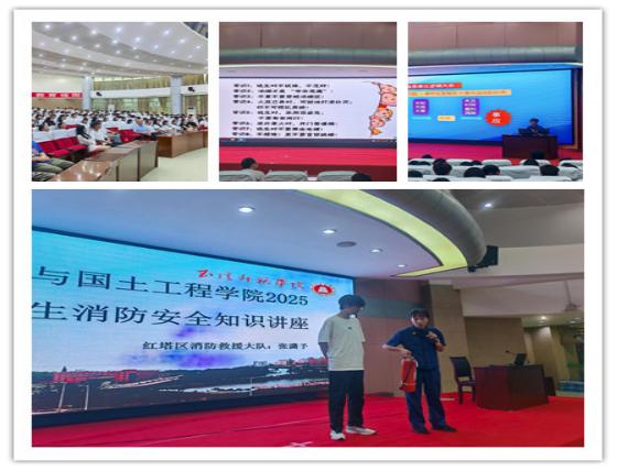 为进一步增强2025级新生消防安全意识,提高消防应急能力,预防校内消防安全事故发生,9月4日晚,保卫处邀请红塔区消防救援大队宣传教员张潇予,向地理与国土工程学院和法学院2025级新生讲授消防安全知识讲座。讲座由保卫处消防安全科科长李绍荣主持,地理与国土工程学院、法学院440余名师生参加。
