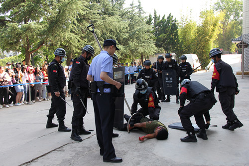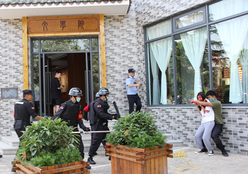 3.联合玉溪市公安局反恐支队、红塔山派出所在文学院一楼开展反恐防暴实战演练和反恐防暴知识现场培训,市公安局、市教体局、副校长杨光、各学院师生、保卫处全体人员共220余名师生观摩演练。通过开展实战演练,不断提升校园安保队伍应急处突水平以及学生突遇伤害事件时自救自护和安全疏散的能力。