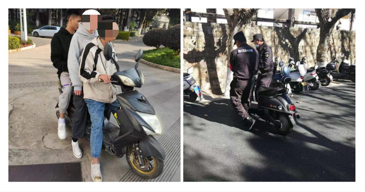 3.严查校园内违规停放非机动车辆18次,发现学生在校园内骑电动车逆行20余车次和超载、超速、超员40余车次。两起4辆电动车因违规停放被锁车后,车主私自撬锁骑走,车主分别为物电学院职工和音乐学院学生,已报相关学院研究处理。