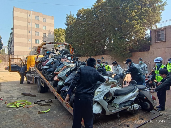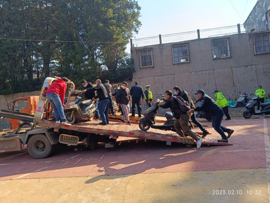 5.在前期开展大量工作的基础上,按照玉溪市创建全国文明城市工作指导小组办公室“关于上门集中办理摩托车报废注销的重要通知”要求,2月上旬保卫处将存放在教工住宅楼七幢旁134辆无主机动车和非机动车辆移交红塔区凤凰街道教育社区居民委员会、玉溪市交警支队进行处置,圆满完成了校园僵尸车的清理处置工作。