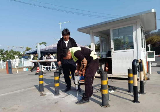3.配合后勤服务中心完成西门道路修缮和篮球场改造项目施工期间关闭西门开通红塔中轴线人行通道、岗亭周边道闸、人脸机、防撞桩布线、门岗值守、道路划线等工作。