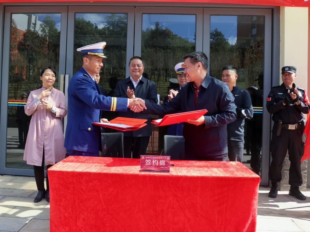 3.完成“玉溪市火灾调查实验中心”签约暨揭牌仪式。玉溪师范学院党委副书记、校长段红云,党委委员、副校长李涛,相关学院和部门负责人;玉溪市消防救援支队支队长杨若冰、副支队长钱小汉出席签约仪式,段红云与杨若冰共同为“玉溪市火灾调查实验中心”揭牌,李涛与钱小汉共同签署了《玉溪市火灾调查实验中心共建合作框架协议》,与会领导为火灾调查专家颁发聘书。