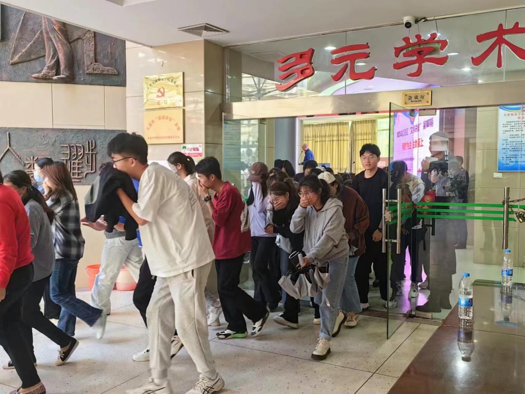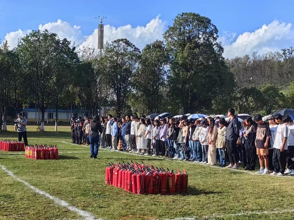 2.在全国第32个119消防日,保卫处联合红塔区消防救援大队在我校开展主题为“预防为主,生命至上”消防宣传月系列活动。11月7日下午,红塔区消防救援大队副大队长李园在图书馆多元学术厅向师生讲授消防安全知识讲座,讲座结束后开展“安全读秒”火灾疏散逃生演练,参会师生在红塔区消防救援大队专业消防员的引导下,有序疏散到3号足球场,开展灭火实战演练,学习正确使用灭火器扑灭初期火险,给优秀消防志愿者颁发了聘书。