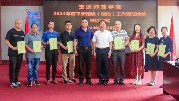 1.组织召开学校第二季度校园安全稳定工作会,有关部门负责人汇报了近期工作,校长段红云对校园安全稳定工作作出部署,党委书记姜家雄围绕抓好工作落实提出要求。期间校领导与各学院部门代表签领《玉溪师范学院2024年度平安建设(综治)工作责任清单》。