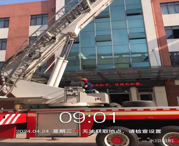 6.与红塔区消防救援队开展联动训练,借助云梯车在艺术教学楼进行模拟火险登高救援。