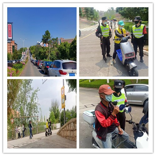 1.持续开展校园交通安全整治,对不规范停放的车辆张贴温馨提示电话通知挪车;每周不定期在主要路段对校内外卖配送人员进行交通安全检查。