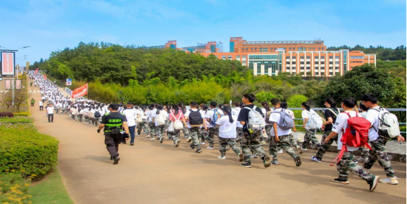 2.组织开展2024级新生应急疏散演练,2800余名新生在社区管理员和学生志愿者的引导下,按照演练方案从不同楼栋紧急疏散到室外安全区域,随后跑步集结到田径场,整个演练过程紧张有序、达到预期效果。