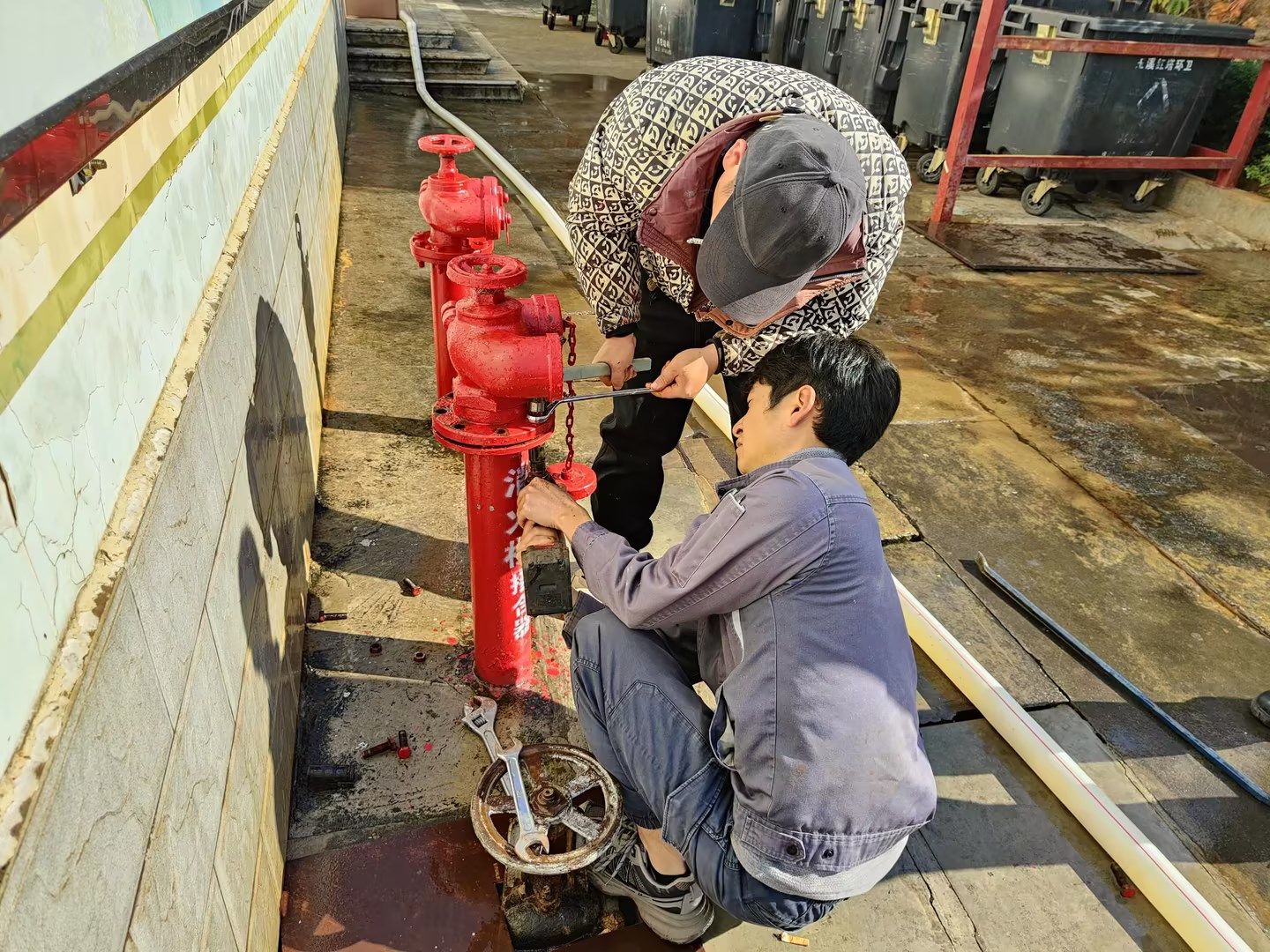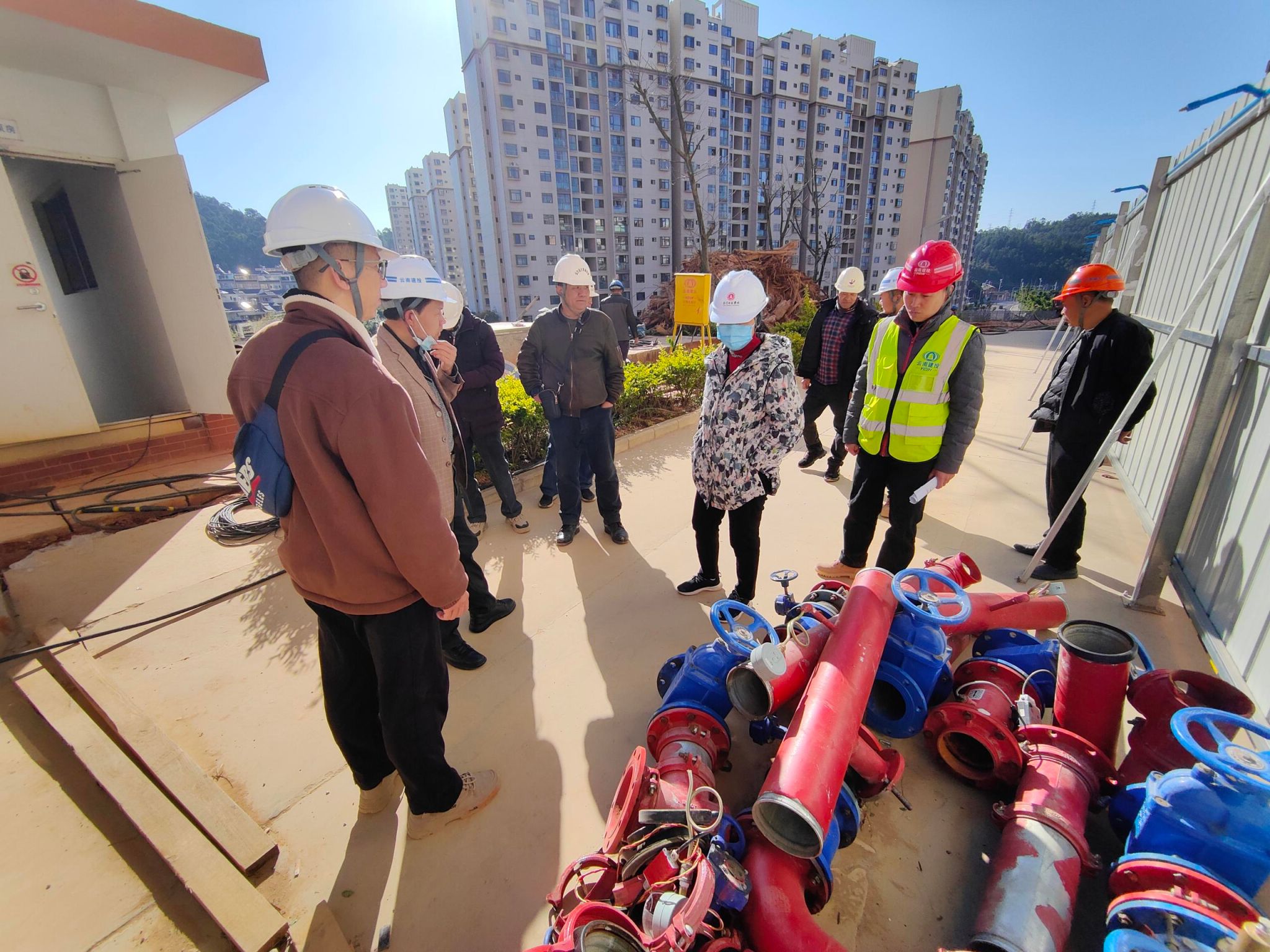 4.协同后勤服务中心基建科、施工方代表查看实训大楼管道井防火封堵点位,经排查共有110个;完成学生公寓K、L、M、N片区,艺术楼和音乐楼片区消防供水管道接通,现消防管网已正常通水。