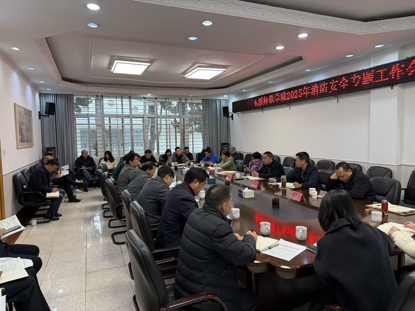 4.组织召开2025年第四季度校园安全稳定工作会暨消防安全工作专题会,相关职能部门主要负责人、各二级党委书记、高职学院、体职学院执行院长参加,李涛副校长主持会议,段红云校长出席会议并对期末校园安全工作进行部署。