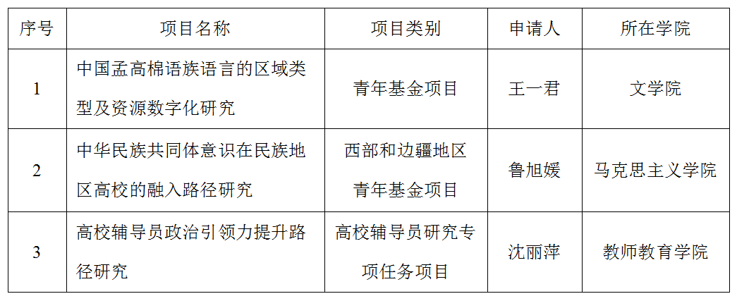 9月15日,教育部社会科学司对2023年度教育部人文社会科学研究一般项目评审结果进行公示。玉溪师范学院3个项目获立项公示,其中青年基金项目、西部和边疆地区青年基金项目、高校辅导员研究专项任务项目各1项。
