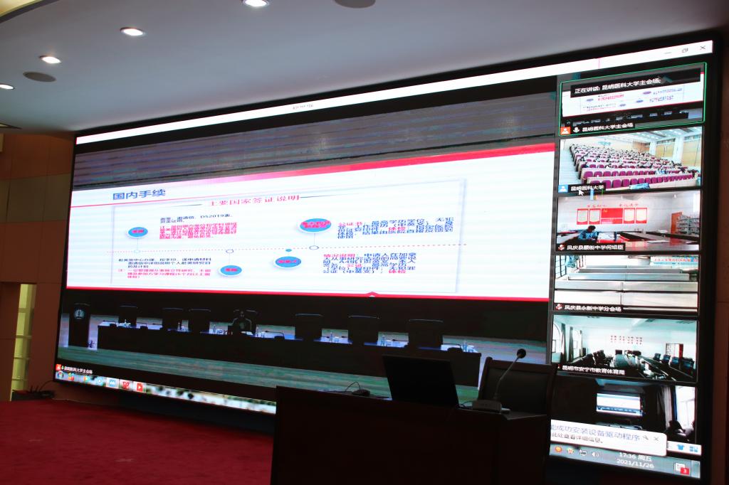 此次培训会由云南省教育厅统筹,以视频形式开展,昆明医科大学设主会场,玉溪师范学院设分会场线上同步学习。我校国家公派、西部人才培养特别项目、云南省地方公派项目录取人员,其他校际交流出国留学项目人员、有意向自费出国的留学人员以及外国语学院和文学院相关专业辅导员、班主任等200余人参加此次留学培训。