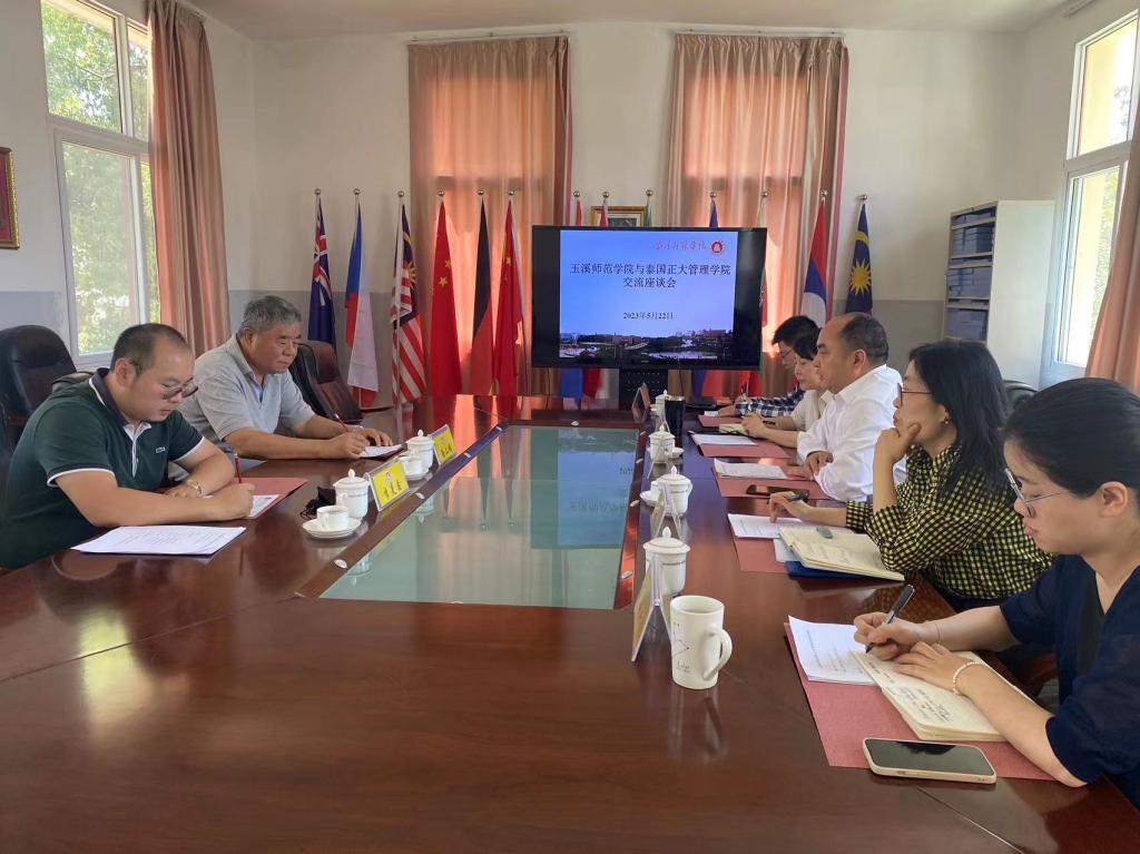5月22日,泰国正大管理学院副校长徐二明教授、国际处李旻鑫主任到校访问交流,座谈会在三元楼307会议室召开。学校杨伟副校长、对外合作交流处处长杨春、副处长吴晓颖,人事处人才科科长巢凯翔等参加了交流座谈。