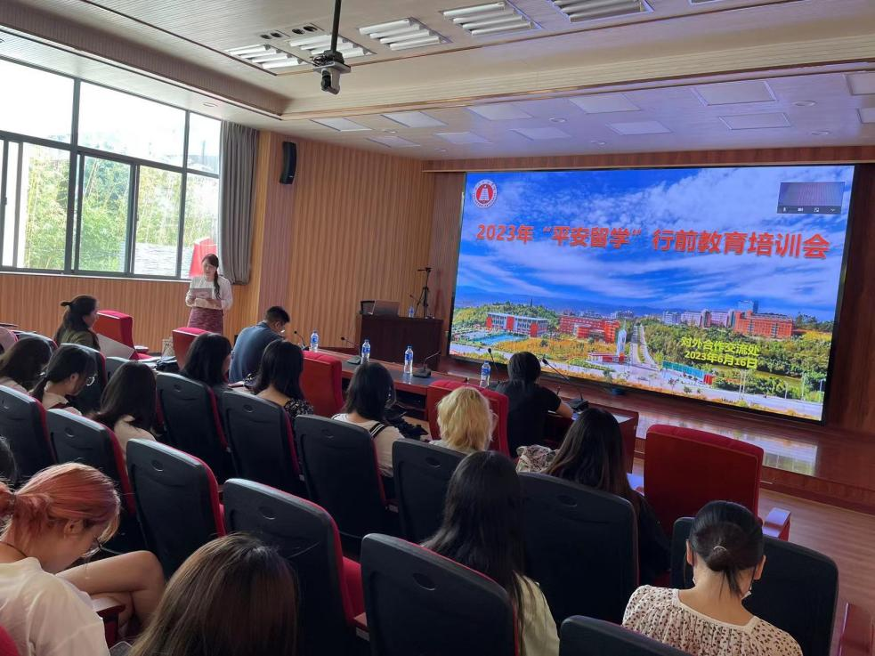 本次培训旨在深入贯彻落实党的二十大及2023年全国教育工作会议精神,围绕新时代人才强国战略,推动出国留学工作高质量发展,巩固和完善出国留学行前培训专项工作机制,为出国留学的师生提供了更加专业化、更具针对性的行前培训服务,为“平安留学”保驾护航。我校外国语学院近80名即将出国留学的学生出席此次培训。