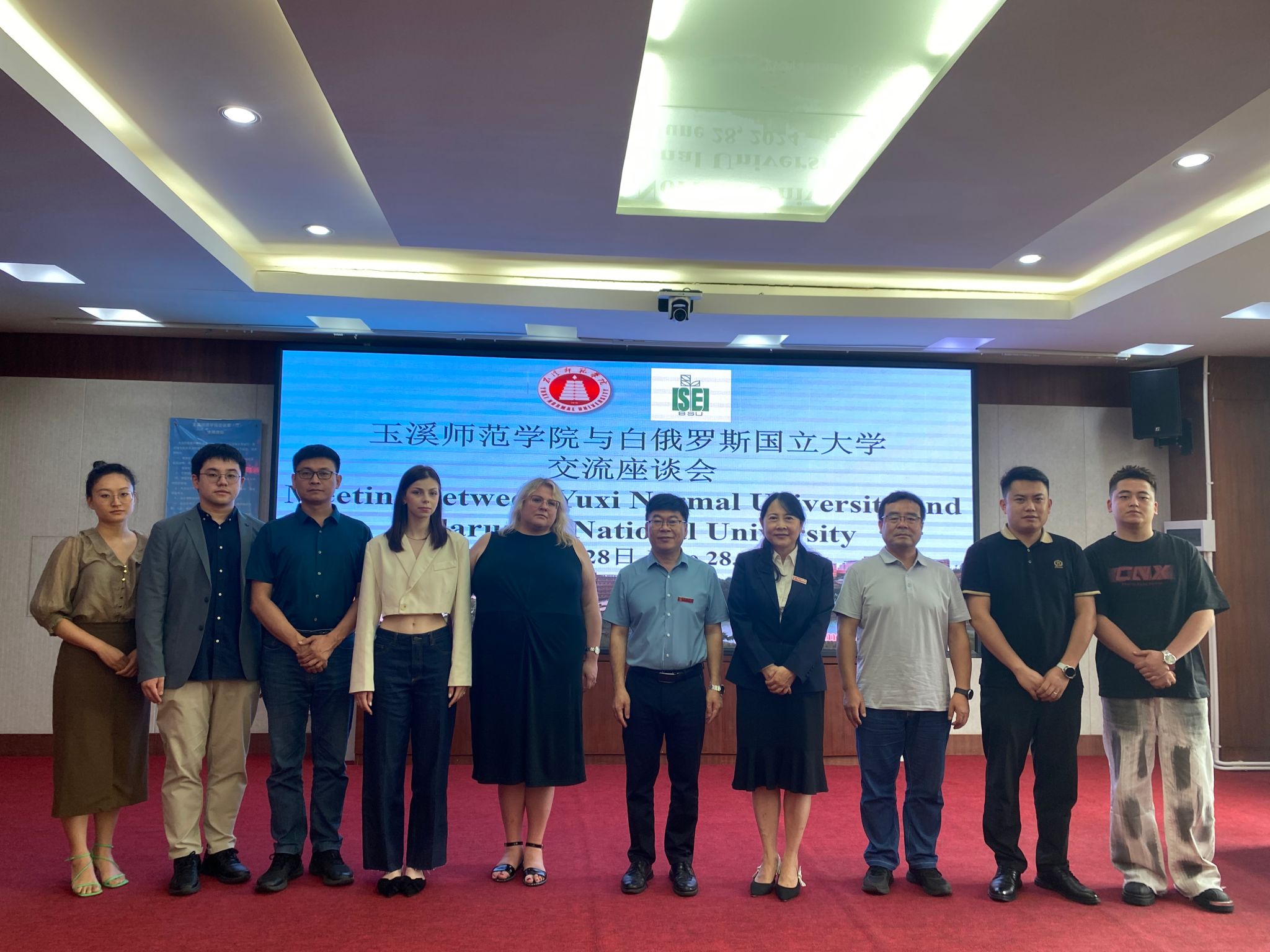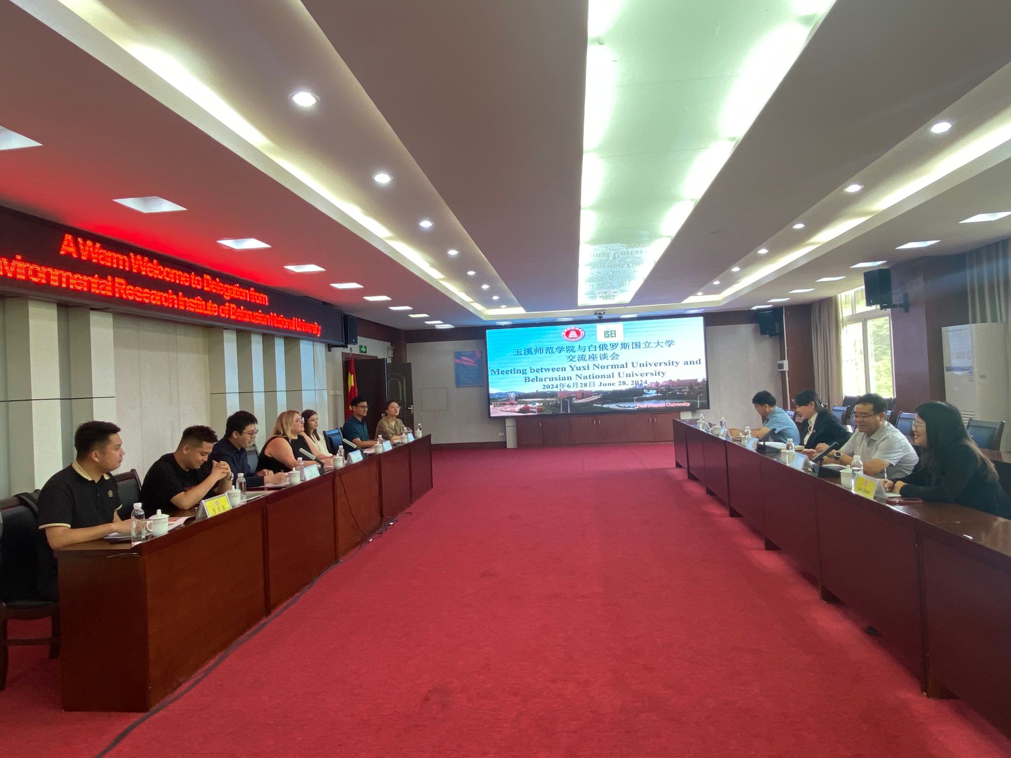 6月28日,白俄罗斯国立大学萨哈罗夫环境研究所法务处处长一行到访玉溪师范学院。双方在图书馆3003会议室举行交流座谈。对外合作交流处、化学生物与环境学院、教师教育学院相关单位负责人参加座谈。会议由对外交流合作处副处长吴晓颖主持。